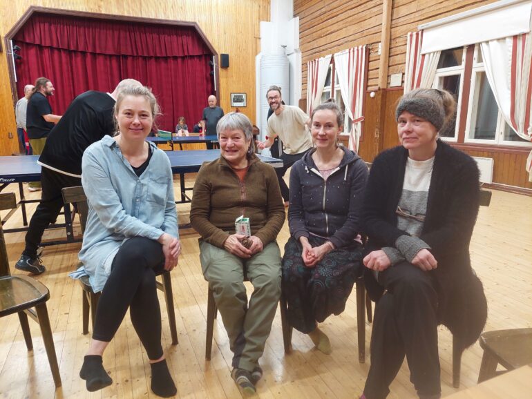 Tänä iltana Voiman talolle on kokoontunut pingiksen pelaajia, kutojia ja Leppäkosken Voima ry:n tapahtumajaosto, jolla on työn alla joulumyyjäisten suunnittelu.