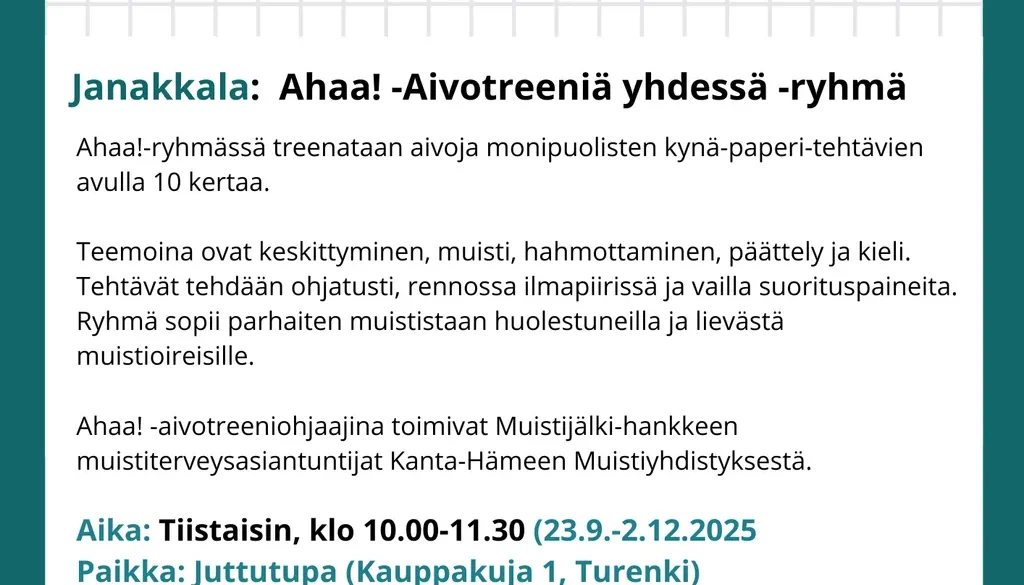Janakkala: Ahaa! -Aivotreeniä yhdessä -ryhmä