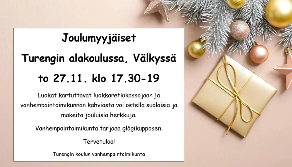 Joulumyyjäiset Turengin alakoulussa, Välkyssä to 27.11. klo 17.30-19