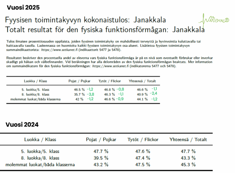 Janakkalan Move!-tulokset ovat kehittyneet parempaan suuntaan