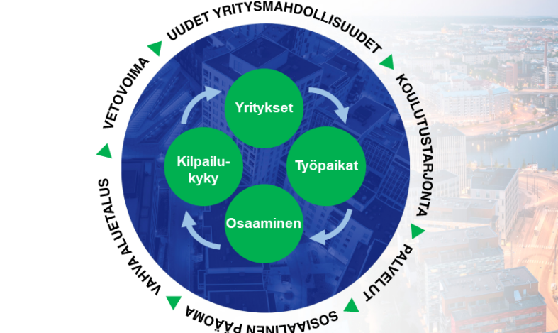 - Tilannekuva alueesta syntyy alueen toimijoiden vuorovaikutteisen työskentelyn tuloksena. Työ perustuu alueelta koottuun tietoon yritysten näkemyksistä, hankkeista ja väestönkehityksestä.
