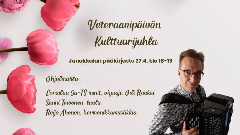 Kansallista veteraanipäivää juhlistetaan Janakkalan pääkirjastolla maanantaina 27. huhtikuuta klo 18-19 tunnelmallisen kulttuuri-illan merkeissä.